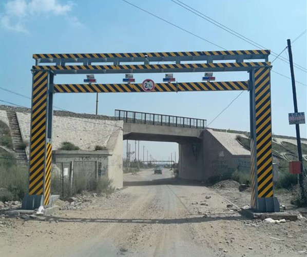 公路限高架又叫做龍門架、龍門跨等。近些年來,橋梁倒塌重大事件時有發生,損失慘重,觸目驚心。究其原因,不外乎超重超限。限高架能有效的保護橋梁、隧道、道路。 目前常見限高架分三種:固定限高架、手動限高架、電動限高架,用于橋梁、涵洞、隧道入口處的門型構架,一般為鋼結構焊接而成,起防護橋梁、涵洞、隧道的作用;上有標志牌,標有限高米數,用于提示車輛。